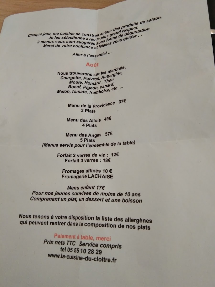 Introducing the menu at La cuisine du Cloître promises a delightful culinary journey in the heart of Limoges. Nestled at 6 Rue des Allois, this renowned establishment offers an exquisite three-course tasting menu, celebrated for its high quality and excellent value, with meals starting at just 24€. Diners rave about the seasonal, locally-sourced ingredients, expertly crafted into dishes that are both light and flavorful.